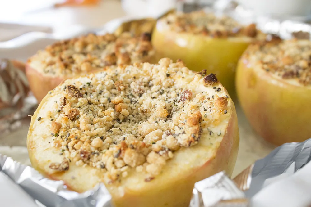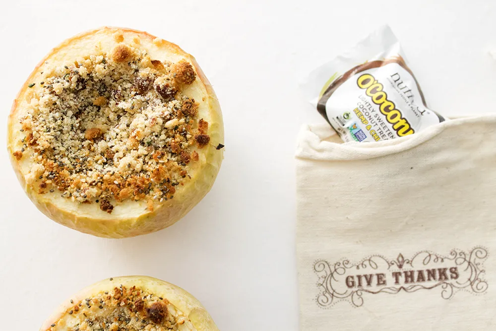 This apple is stuffed with superfoods like: coconut oil, hempseed, and chia seed… But wait, there’s more! Our secret crumble ingredient is O’Coconut. You’ll never view a baked apple stuffed crumble the same again.