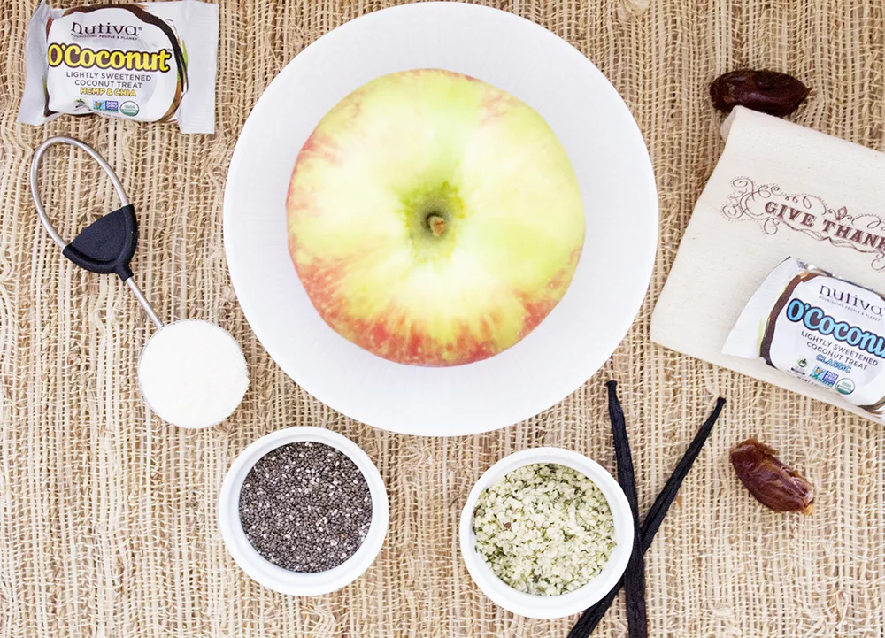This apple is stuffed with superfoods like: coconut oil, hempseed, and chia seed… But wait, there’s more! Our secret crumble ingredient is O’Coconut.