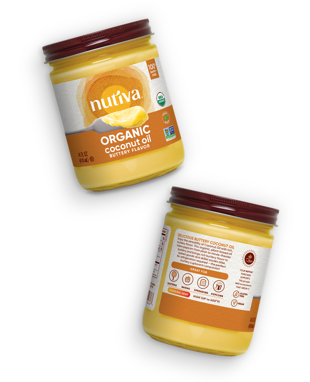 Our certified organic buttery flavor is made from pure non-GMO fermented plants including sunflower, coconut and mint. Our coconuts are sourced from some of the richest soils in Southeast Asia and are never processed with any hexane or other harsh chemicals. This product can be used in baking and sautéing, with a smoke point of 400º F.