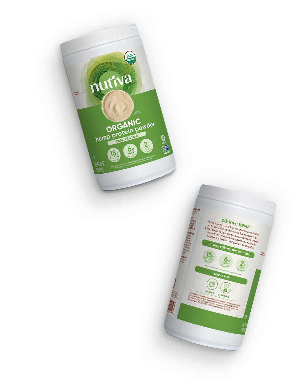 Our Organic Hemp Seed Protein powders have been gently cold-processed, without the use of hexane, a harsh chemical solvent used to process non-organic soy protein powders. They are also vegan and come in a non-BPA container. The protein found in hemp seed is very digestible, making it a great choice for sensitive diets. One serving of our Organic Hemp Peak Protein provides 15 grams of organic protein and 6 grams of fiber (32% DV), while one serving of Organic Hemp Seed Protein Fiber Plus provides 10 grams of protein and 12 grams of fiber (48% DV).